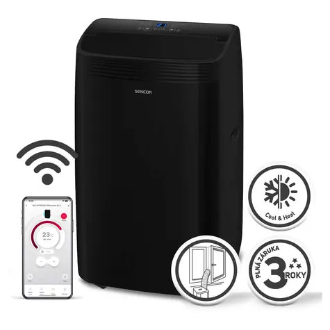 SENCOR SAC MT9079CH černá / mobilní klimatizace / 9000 BTU / chlazení / odvlhčování / ventilátor / topení / smart WiFi (8590669361854)