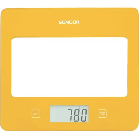 SENCOR SKS 5036YL žlutá / digitální kuchyňská váha / max. 5 kg / funkce TARE / dotyk. tlačítka (8590669315079)