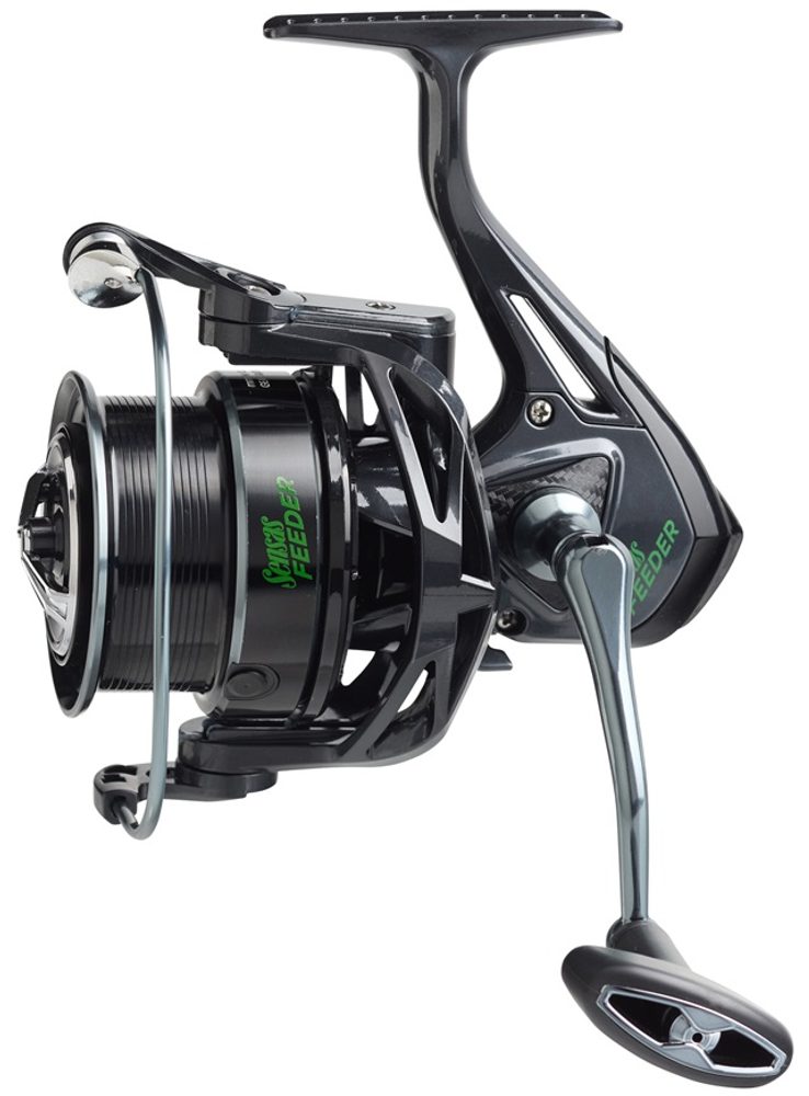 Naviják je určený pro lov na feeder. Bez problémů zvládne lov všech ryb včetně kaprů. Naviják je určený pro lov na feeder. Bez problémů zvládne lov všech ryb včetně kaprů. Jeho pevná konstrukce je stavěná pro použití s těžkými krmítky a lov ve velkých vzdálenostech. Pevný kompozitový materiál těla a rotoru Silný a robustní Zesílené převody Nerezová zesílená hřídel Aluminiová cívka s LC úpravou pro daleké hody Dvojitý kovový klip na silon Šnekový převod s dvojitou S oscilací a křížovým navíjením Antireverz zpětného chodu Nerezová ložiska Odolný překlápěč Dokonale vyvážená klička Ergonomický úchop kličky Titanová proti zkrutná rolnička