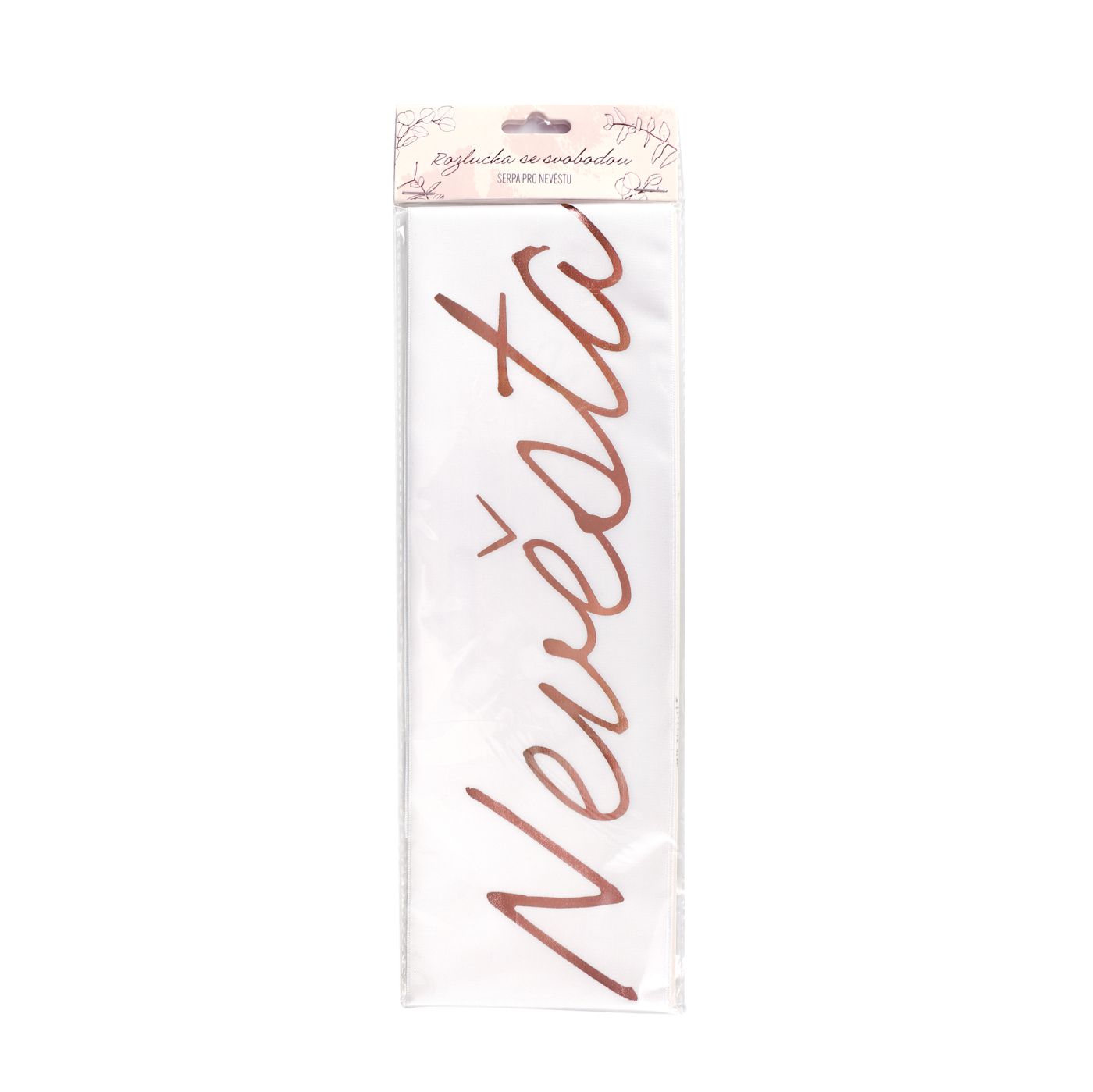 Vymazlete nevěstinu rozlučku se svobodou do detailu s bílou šerpou s nápisem "nevěsta".