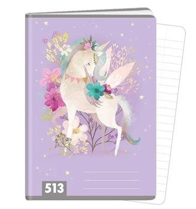 Sešit 513 Magical WORLD, velikost A5, 10 listů, nezbytná součást školních potřeb, vhodný pro žáky 1. a 2. ročníku, široké řádky 12 mm.
