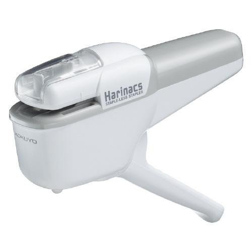 Praktická sešívačka KOKUYO Harinacs mini - plastové tělo, bílá barva, šetrná k životnímu prostředí, bezdrátková. Po stlačení dojde silným tlakem k proděravení a sepnutí, vznikne oválná dírka. Sešije až 5 listů 65 gramového papíru, příjemné uchopení, snadné stlačení, baleno na blistru.