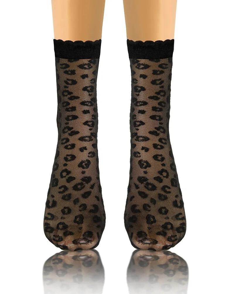 Tenké dámské ponožky - zdobené jemným vzorem - netlačící lem s volánkem - balené po dvou párech v plastovém sáčku Složení: 91 % polyamid, 9 % elasta