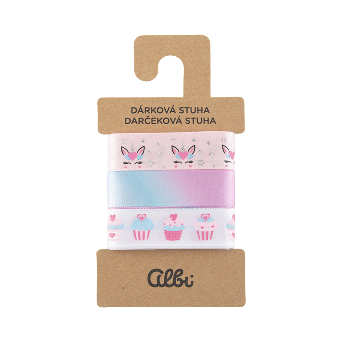 Set látkových stuh se 3 různými motivy. Délka stuhy: 3 × 1,5 m Šířka stuhy: 1,6 cm