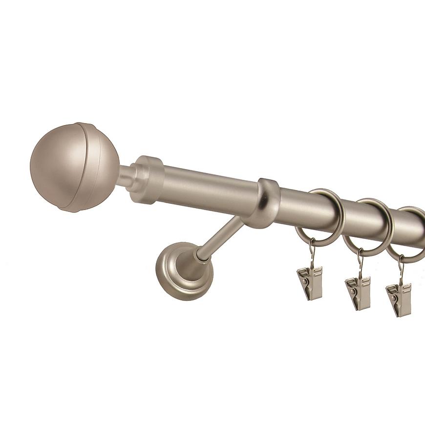 Kompletní kovová garnýž o průměru tyče 25 mm. Sada obsahuje čtyři koncovky, dvě záclonové tyče, dva držáky, kroužky se žabkami a montážní příslušenství. Garnýž v saténové barvě se hodí k různým typům závěsů a je také ideálním prvkem dokončení každého interiéru.
