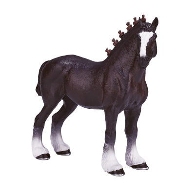 Impozantní figurka shirského koně, jednoho z největších a nejsilnějších plemen koní na světě. Tato detailně zpracovaná figurka zachycuje mohutnou postavu, silné nohy a charakteristickou hustou hřívu a ocas. Shirský kůň je známý svou pracovitostí a elegancí, což je skvěle podtrženo