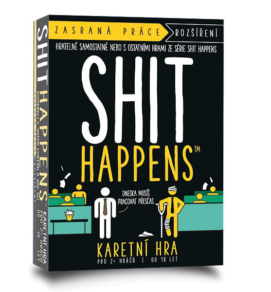 Shit Happens: Zasraná práce je samostatně hratelné rozšíření pro střelenou párty hru Shit Happens. Stejně jako v základní hře budete muset řadit karty správně podle jejich míry průserovosti, přičemž v krabici najdete hned 200 nových karet. Na těchto kartičkách si přečtete fakt strašný věci, který pak budete hodnotit podle toho, jak moc jsou na hovno. Je poštípání mravenci LEPŠÍ, nebo HORŠÍ než oznámení o vystěhování? Je to HORŠÍ než postel posraná od chotě? Ohodnoťte situaci, a pokud se trefíte na správný místo na naší škále posranosti, můžete si kartu nechat. Když správně ohodnotíte 10 karet, vyhráváte. Tak proč ještě čtete tenhle popis? Prostě si to kupte a pusťte se do hraní! Hra Shit Happens: Zasraná práce obsahuje: 200 karet pravidla v češtině