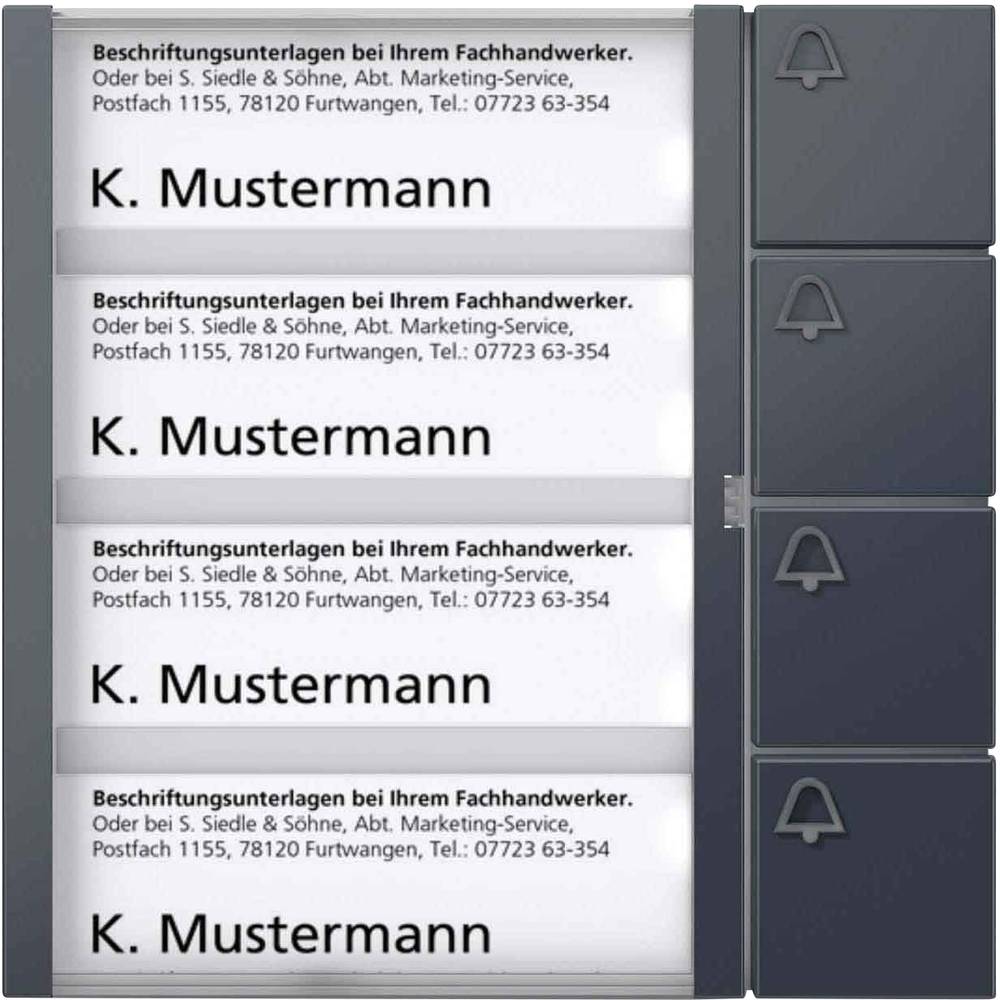 Modul tlačítek s kapsou na jmenovky, 4 jmenovek a 4 samostatnými tlačítky pro volání se symbolem zvonění.