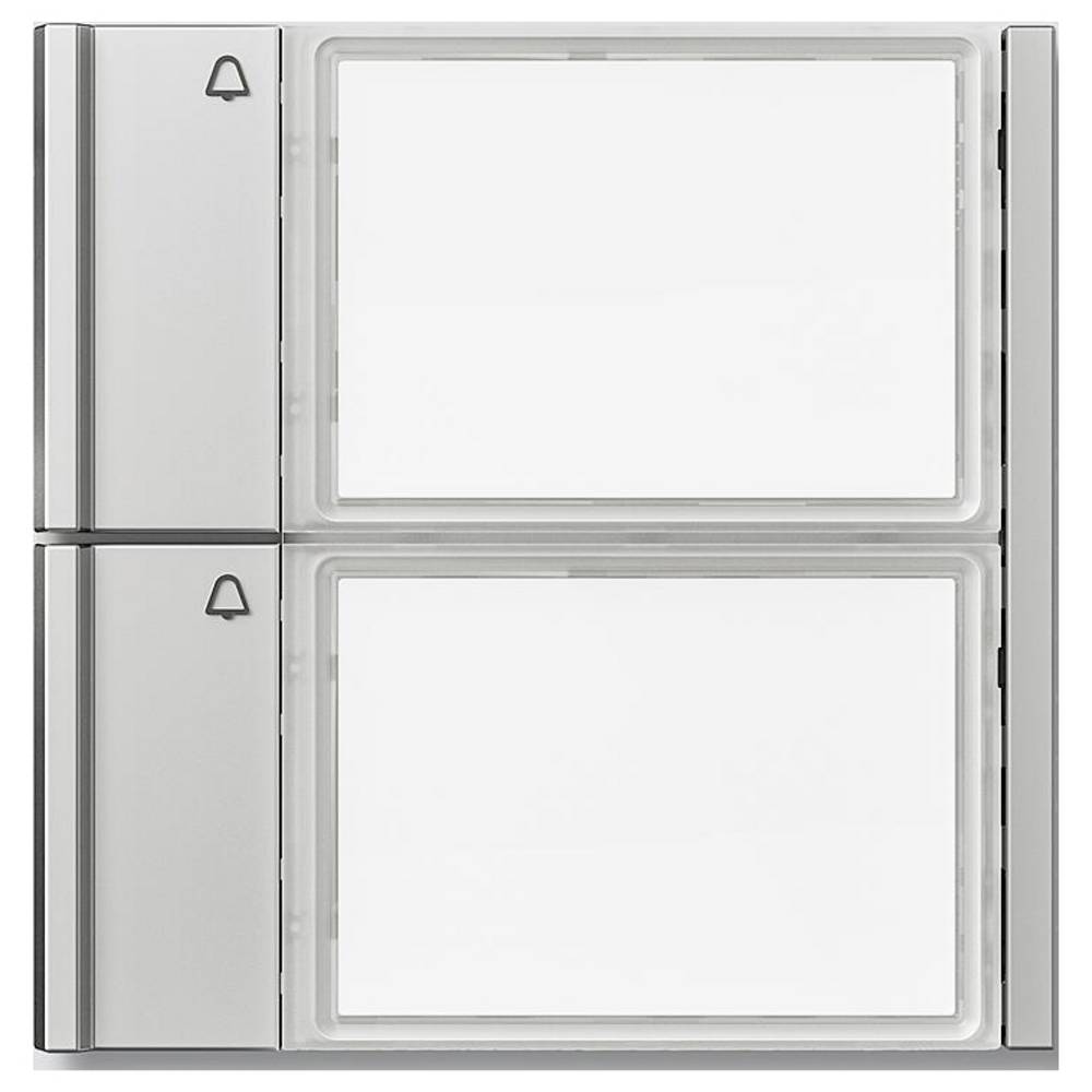 Tlačítka pro volání pro Siedle Vario: 2 telefonní tlačítka s zvonkovým symbolem a podsvícenou, vyměnitelnou jmenovkou. Jednoduchá kabeláž díky předmontované zásuvnému kabelovému spojení.