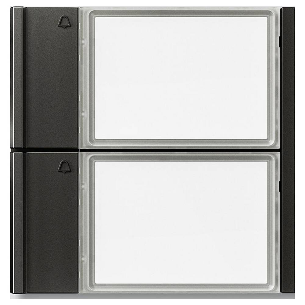 Tlačítka pro volání pro Siedle Vario: 2 telefonní tlačítka s zvonkovým symbolem a podsvícenou, vyměnitelnou jmenovkou. Jednoduchá kabeláž díky předmontované zásuvnému kabelovému spojení.
