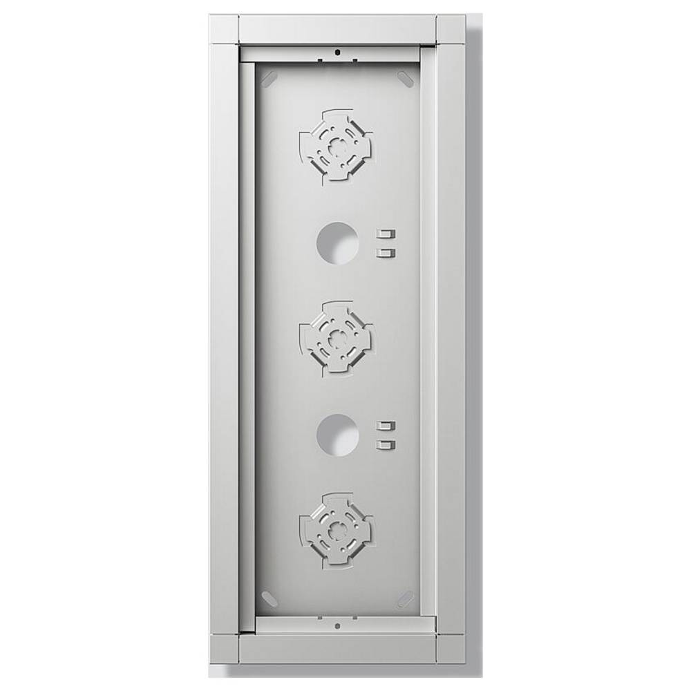Pouzdro na omítku z hliníkového lisovaného profilu se zinkovými ročními spojkami a deskou z ocelového plechu pro 3 funkčních modulů.