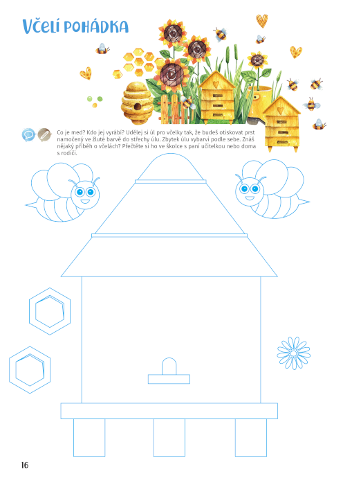 Pracovní sešit zahrnuje úkoly, které se zaměřují na obecný rozhled u dětí ve věku 3 – 4 roky. Děti získávají a upevňují si základní poznatky z oblasti přírody (rostliny a živočichové, roční období), společnosti (lidé v blízkém i širším okolí, dopravní výchova), umění a kultury (výtvarné činnosti, hudba a hudební nástroje), jazyka a komunikace (mluvená řeč, grafomotorické předpoklady psaní), matematiky (čísla a vztahy, geometrické útvary, logika). Zadání jsou doplněna snadno zapamatovatelnými básničkami, korespondujícími s tématem a úkolem, který děti plní. V souladu s RVP PV Barevnost sešitu podporuje chuť dětí k práci Básnička ke každému cvičení Rozvíjí postřeh a zlepšuje pozornost dětí V rámci lektorování byl sešit vyzkoušen dětmi