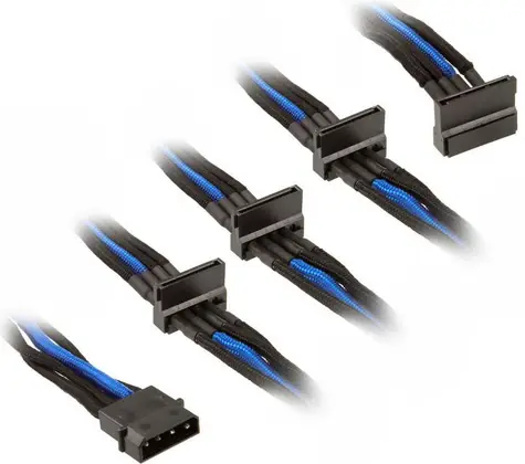 SilverStone kabel 4-pin Molex 4x SATA rozšíření 30cm černo-modrá / individuálně pletená vlákna