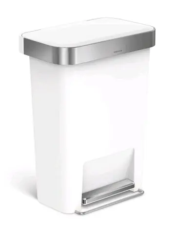 Simplehuman Pedálový odpadkový koš – 45 l / kapsa na sáčky/ obdélníkový/ bílý plast / nerez (CW1387CB)