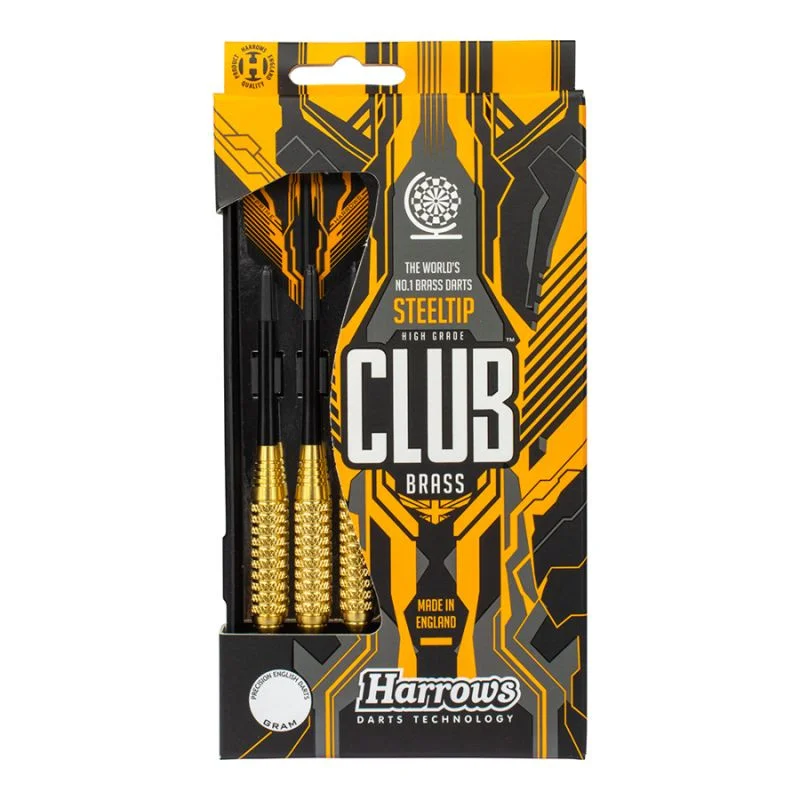 Vlastnosti: Club BRASS je v současnosti nejoblíbenějším modelem šipek na světě. S velkou přesností vyrobený mosazný barel, dostupný v mnoha hmotnostech a provedeních, je kombinován s nylonovým násadcem. Hlavička šipek je vyrobena z kovu (Steel Tip), takže je určena pro hru na terče ze sisalových vláken.