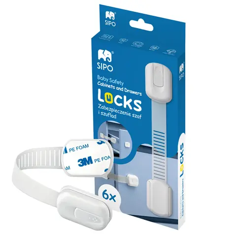 Sipo Bezpečnostní zámky víceúčelové pro skříňky a zásuvky, nastavitelné, sada 6 ks (SPSBS-217)