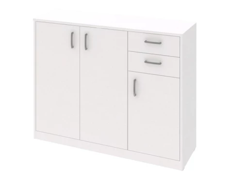 Široká komoda z programu Mega v bílém dekoru - variabilní program nábytku Mega je zcela univerzální a vhodný pro zařízení každé místnosti.