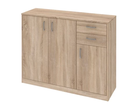 Široká komoda Mega v dekoru dub sonoma je univerzální a variabilní. Lze ji kombinovat s dalšími díly a přizpůsobit prostoru i potřebám.