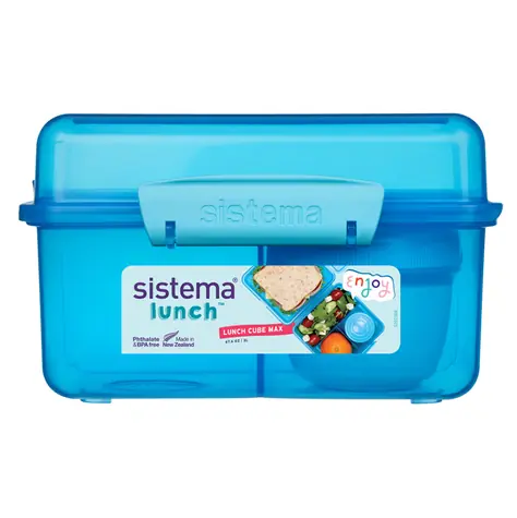Sistema Lunch Tříkomorová krabička s nádobou na jogurt s dvojitým víčkem 2 l modrá