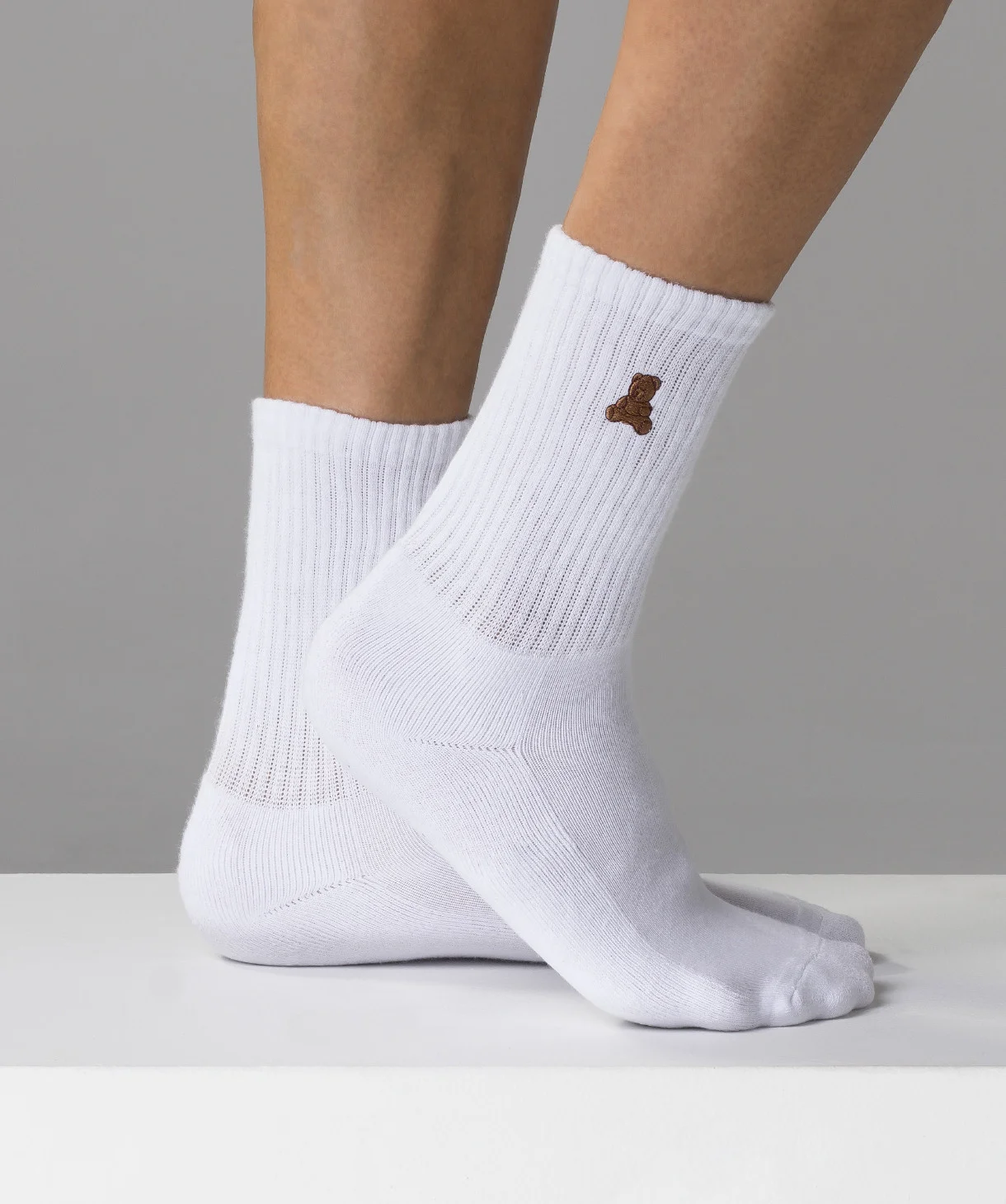 Skarpetki unisex, Kolekcja Homewear - HomewearTe skarpety to wyjątkowa propozycja i must-have w twojej szufladzie ze skarpetami. Są białe, a więc w ponadczasowym kolorze, mają standardową długość i ozdobione są niewielkich rozmiarów misiami po bokach. Aby wyprodukować skarpety wykorzystana została wyjątkowa technologia. Efektem są skarpety, których dolna część składająca się głównie z miękkiej bawełny z wykończeniem frotte zapewnia stopom oddychanie, maksymalny komfort noszenia i zapobiega poceniu się, a górrna warstwa jest cieńsza, dzięki czemu z łatwością odprowadza niepotrzebną wilgoć. Kropką nad i jest nieuciskający ściągacz, który idealnie dopasowuje się do ciała. Skarpety cechują się trwałością i wytrzymałością, nie rozciągają się, nie wypychają i na długo zachowują swoją pierwotną formę.BIAŁY75% bawełna, 23% poliamid, 2% elastan
