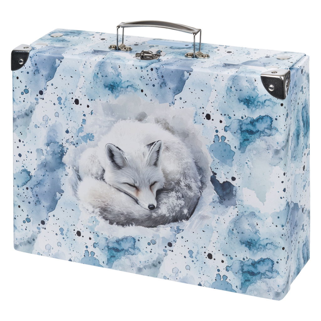 • Praktický skládací kufřík na výtvarnou výchovu, hračky či drobnosti. • Díky důmyslnému systému patentek lze kufřík s okovanými rohy snadno složit i rozložit během několika vteřin. • Klasické uzavírání na přezku a kovové ucho zajišťují snadné a pohodlné nošení. • Vyroben z pevného laminovaného papíru.