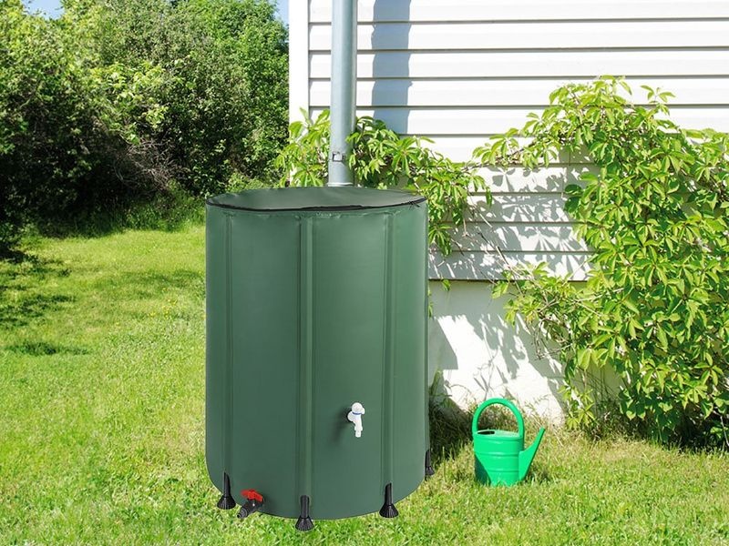 Skládací sud na vodu Oskar L s objemem 500 l. Odolné PVC, víko na zip s ochrannou mřížkou a dva výpustné ventily pro hadici nebo konev.