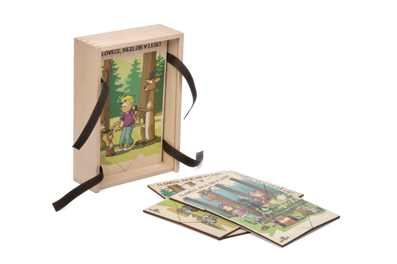 Skládačku vyrábí u nás v dílně české ruce z kvalitního českého certifikovaného dřeva. Balení obsahuje 10 dřevěných karet. Baleno v dřevěné krabičce z masivu s vysouvacím víkem 32,5 x 9 x 22,5 cm . Autorem kreseb jsou čeští ilustrátoři, obrázky jsou chráněny autorskými právy. Skládačka zábavnou a hravou formou seznamuje děti i dospělé s přírodou. Karty jsou rozřezané na 8 geometrických tvarů pro rychlé skládání. K balení jsme vám dali tištěný klíč s vyobrazením všech 10 obrázků. Jednotlivé karty jsou v dřevěné krabici proložené deskami a stuhou pro snadnou manipulaci při vyjímání a ukládání. Lesní svět = značka s ekologickým certifikátem udržitelného hospodářství PEFC. Všechny výrobky jsou vyrobeny s ohledem na životní prostředí.