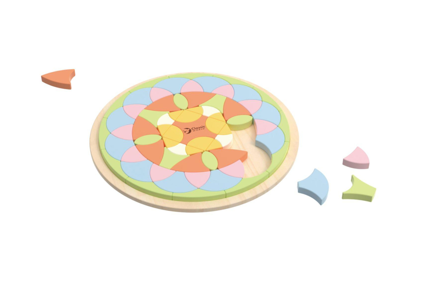 Nech volně plynout svou fantazii a tvoř nádherné obrazce s dřevěnou mandalou! Skládanka obsahuje 71 pečlivě zpracovaných dílků v harmonických barvách, které lze skládat do kruhových i volných geometrických vzorů. Děti si při skládání procvičí jemnou motoriku, koncentraci i kreativitu. Hračka je ideální pro klidné tvoření a relaxaci. Vše je uloženo v praktickém dřevěném rámečku, který slouží i jako podklad pro skládání. Rozměry balení: 23 cm x 23 cm x5cm Vhodné pro děti od 3 let