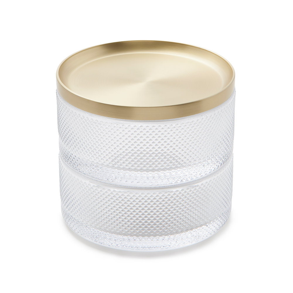 Umbra Tesora je moderní šperkovnice, která kombinuje elegantní design a praktickou funkčnost. Díky dvěma úložným vrstvám nabízí dostatek prostoru pro prsteny, náramky i další doplňky. Patra lze stohovat pro úsporu místa, nebo je rozdělit a přizpůsobit si tak uspořádání podle potřeby. Kovové víko navíc slouží jako odkládací tácek pro vaše nejoblíbenější šperky, které chcete mít vždy po ruce. Kompaktní rozměry a stylové provedení dělají z Tesory nejen organizér, ale i dekorativní doplněk pro váš toaletní stolek, komodu či noční stolek.