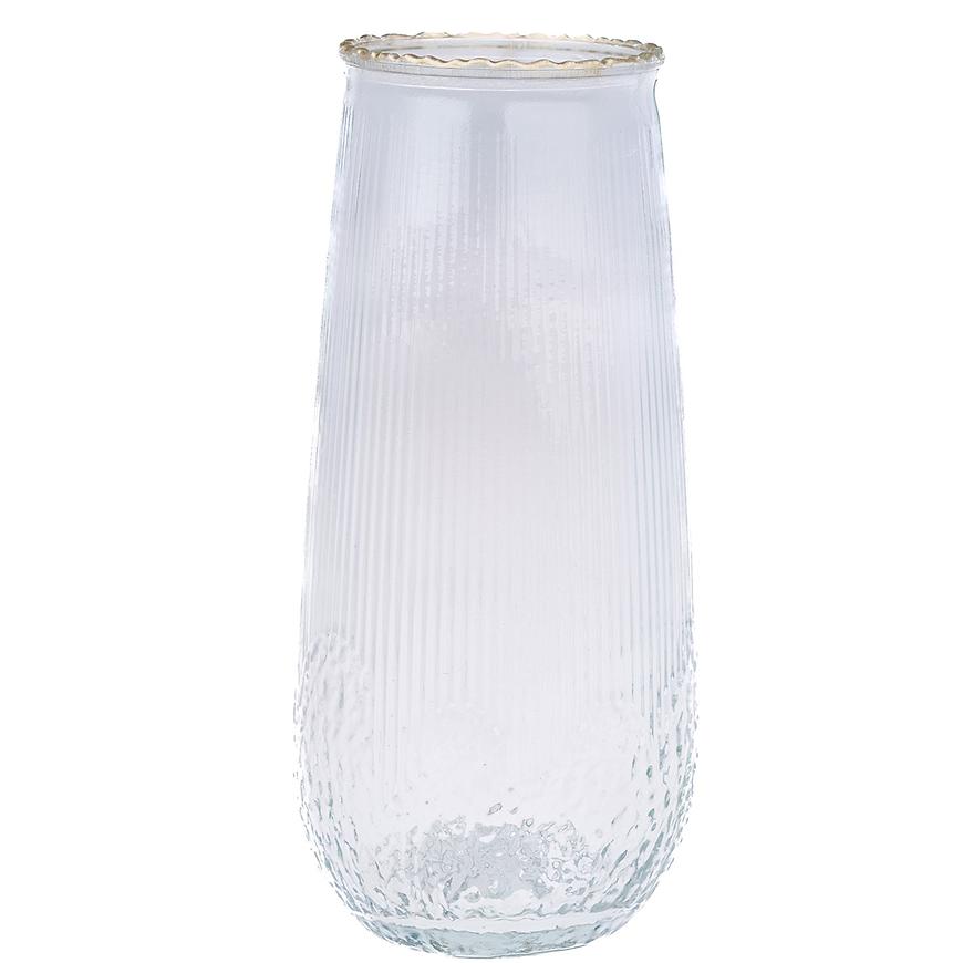 Skleněná váza se zlatým okrajem čirá 23.7cm
