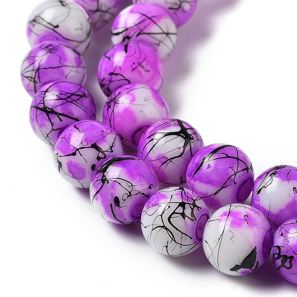 Tyto skleněné korálky o průměru 8 mm zaujmou výrazným fialovo-bílým provedením doplněným o originální černé žíhání. Díky nepravidelné kresbě je každý korálek jedinečný a dodá šperkům osobitý charakter. Korálky jsou vyrobeny ze skla a následně barveny a tepelně upraveny (baking painted), což jim dodává krásný lesk, stálobarevnost a vyšší odolnost proti běžnému opotřebení. Průvlek o velikosti 1 mm umožňuje pohodlné navlékání na elastomer, elastickou lycru i další běžné návlekové materiály. Větší velikost 8 mm působí výrazněji, a proto se skvěle hodí jako dominantní prvek náramku nebo náhrdelníku. Transparentní elastomer nechá vyniknout samotnou kresbu korálků, zatímco barevná lycra může celý projekt zajímavě podtrhnout. Korálky prodáváme po deseti kusech – uvedená cena je za 10 ks.