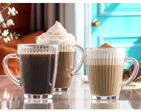 Skleněný hrnek s vroubkováním je ideální pro kávu nebo čaj. Objem 400 ml.