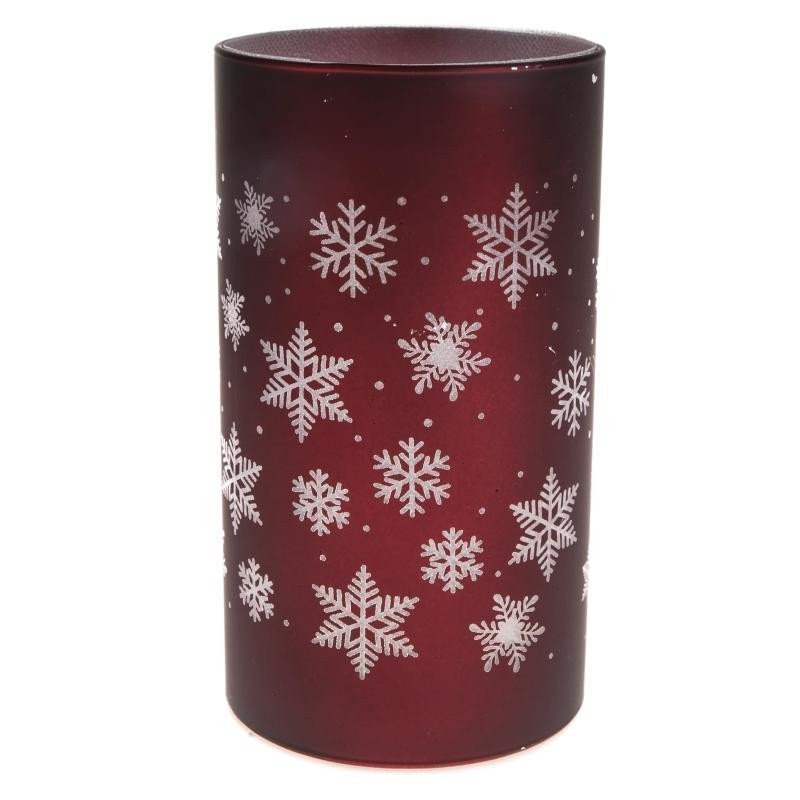 Skleněný svícen s vločkami a LED světlem velký