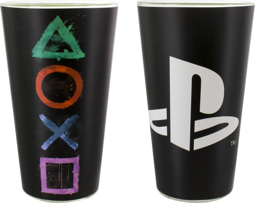 Sklenice v objemu 400 ml s motivem Playstation. Sklenice balena v boxu, není vhodná do myčky nádobí.