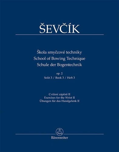 nové vydání smyčcové školy, na které vyrostlo několik generací houslistůjedno ze stěžejních děl věhlasného houslového pedagogastandardních 6 sešitů nyní poprvé v praktickém třísvazkovém provedenístoupající úroveň technické obtížnosti: lehká - mírně pokročilá - pokročilácenné metodické komentáře editora (česky/anglicky/německy)Dalším významným opusem legendy houslové pedagogiky Otakara Ševčíka (1852-1934) je jeho Škola smyčcové techniky. Zatímco Opus 1 představuje zásadní shrnutí Ševčíkovy progresivní metody výuky houslové hry, Opus 2 je zaměřen na elementární problémy techniky pravé ruky. Škola smyčcové techniky o třech částech obsahuje přes 4000 systematicky řazených cvičení smyků se stoupající úrovní obtížnosti. První část se zabývá cvičením pravé paže a vedením smyčce po jednotlivých strunách, druhá obsahuje cvičení ohebnosti zápěstí pravé ruky a arpeggia na dvou strunách, třetí část přináší nejobtížnější varianty smykové techniky - arpeggia přes 3 a 4 struny a akordickou hru.Předkládané nové vydání vychází v zásadě z prvního tištěného vydání z počátku 20. století, ale pracuje i s dalšími prameny ze Ševčíkovy pozůstalosti. Cenným vkladem jsou metodické komentáře editora Jaroslava Foltýna, dlouholetého významného houslového pedagoga Pražské konzervatoře.