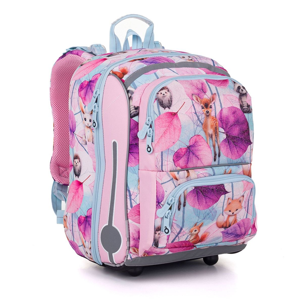 Model BEBE je kompromis mezi aktovkou a školním batohem, který je vhodný pro malé slečny s výškou 110 cm. Roztomilá lesní zvířátka doplňují jemné třpytky. Batoh má jednu velkou komoru se žlutým nepropustným organizérem. Na přední části aktovky najdete dvě praktické kapsičky na zip včetně jmenovky. K aktovce můžete přikoupit PENN 25002 ve stejném designu a krabičku na svačinku nebo lahev ZIVA o objemu 0,5 litru. Hlavní charakteristika: váží 1 080 gramů pevná lisovaná záda s hliníkovou výztuhou jedna komora s nepropustným organizérem a dvě malé kapsy reflexní prvky: na čele a bocích batohu, na ramenních popruzích magnetky na koncích ramenních popruhů (pro snazší uchycení vlajících konců) pevné, nepropustné dno z materiálu TOPDURA s nožičkami poutka pro bederní pás TOP 24021 a TOP 24022 poutko na zavěšení batohu na lavici výškově nastavitelná hrudní přezka odnímatelná karabina na klíče nastavitelné ramenní popruhy PU zátěr proti dešti
