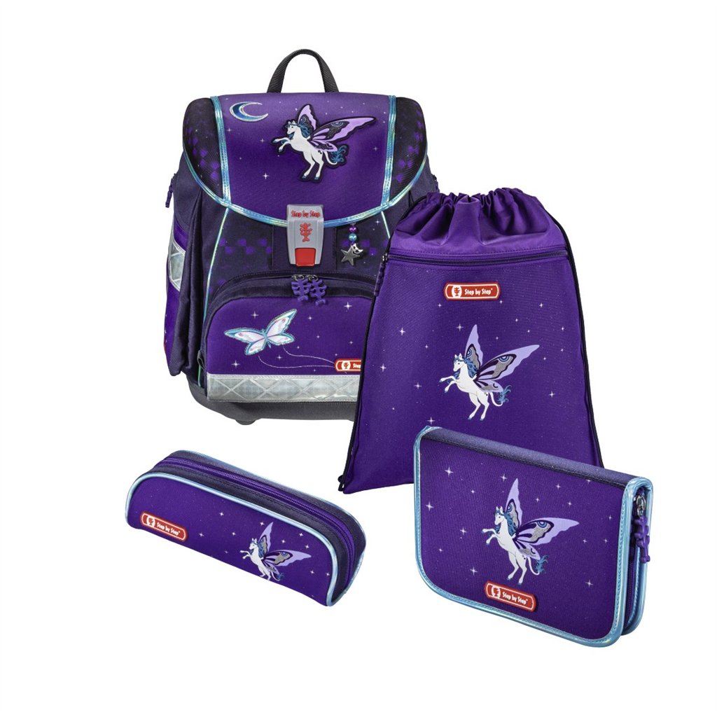 4-dílný set obsahuje: aktovku, plný penál, pouzdro a vak na cvičební úbor nebo přezůvky - Aktovka: - přehledná jednokomorová aktovka, kde se vejde vše potřebné pro školní den od pastelek až po oblečení na tělocvik - Anatomic Air System - ergonomicky tvarovaná záda - Mesh Back Cooling System - polstrování zad z příjemného prodyšného materiálu s ventilačními drážkami pro optimální cirkulaci vzduchu - polykarbonátová konstrukce drží stabilní tvar aktovky - polstrované, nastavitelné popruhy na ramena ve tvaru S (nezařezávají se do ramen, dobře a pevně sedí a snadno se s nimi manipuluje) - popruhy doplněné o značkové reflexní plochy pro větší bezpečnost, značka Reflexite - odnímatelný hrudní popruh, značková přezka YKK - DOKONALÉ POLSTROVÁNÍ ZAD A DÉLKOVĚ NASTAVITELNÉ POLSTROVANÉ POPRUHY ZARUČUJÍ ZDRAVÝ VÝVOJ ZAD DÍTĚTE, PROTO ŠKOLNÍ AKTOVKY Step by Step ZÍSKALY CERTIFIKÁT AGR - vyztužená textilní rukojeť, příjemná do ruky - značkový magnetický uzávěr od firmy FIDLOCK - pro děti snadné otevírání a zavírání aktovky - izolovaná přední kapsa (pro studené nebo teplé jídlo a nápoje) - rozšířitelné boční kapsy na láhev s pitím nebo na drobnosti, uzavření na zip - uvnitř aktovky karabina na klíče - ve víku aktovky gumičky pro připevnění penálu, lepší přehled v aktovce - zadní přihrádka uvnitř aktovky je určena pro těžší předměty ( např. učebnice ), zajistí se tak rovnoměrné rozložení hmotnosti - možnost objednat pláštěnku obj.č. 25978 - nožky pro lepší stabilitu a ochranu před vlhkem a špínou - objem: 21 l, hmotnost: 1,2 kg, nosnost: 10 kg, vnější rozměr: h.23,5 x š.33 x v.38,5 cm, vnitřní rozměr: h.17 x š.28 v.35,5 cm Penál: - značkové tužky (německá zn.Eberhard Faber) - 7 silných trojhranných pastelek s nelámavými tuhami, 12 tenkých trojhranných pastelek, tužka - pravítko rovné, pravítko trojúhelníkové, guma, dvojité ořezávátko, rozvrh hodin - zapínání na zip Pouzdro: - pro školní pomůcky např. pera, tužky, nůžky ... - zapínání na zip Pytlík na cvičební úbor nebo přezůvky: - zavírání utáhnutím šňůrky, přední kapsa - zapínání na zip