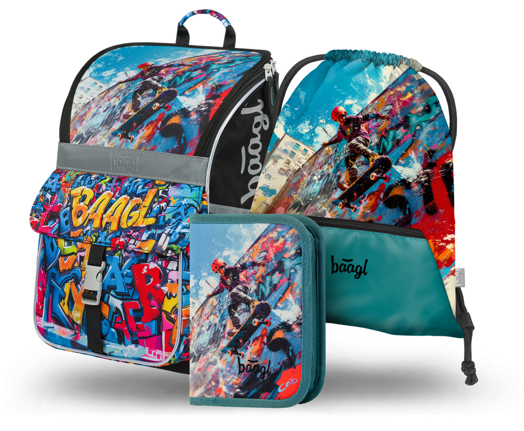 Cenově zvýhodněný aktovkový set řady BAAGL ZIPPY, vhodný pro děti od 1. třídy ZŠ. Obsahuje školní aktovku, penál a sáček na obuv. ŠKOLNÍ AKTOVKA Máte doma nadšence do skateboardingu? Ergonomická školní aktovka Zippy s motivem skateparku bude trefou do černého! Je vhodná pro děti od 1. třídy ZŠ. Díky posuvnému zádovému systému bude dobře sedět i nejdrobnějším prvňáčkům. Školní ergonomická aktovka s vyztuženým tělem, vnitřním organizérem a třemi oddělenými kapsami. Posuvný zádový systém ERGO ADJUSTABLE umožňuje nastavení aktovky do tří různých velikostí, takže může doslova růst spolu s dítětem. Plně nastavitelné popruhy zajišťují maximální přizpůsobení aktovky postavě školáka. Aktovka disponuje vyklápěcím systémem otevírání, díky kterému se školák snadněji dostane ke svým pomůckám přímo z lavice. Vnitřní prostor aktovky je doplněn gumičkou pro fixaci obsahu co nejblíže k těžišti těla. Boční kapsy z pevného materiálu, které jsou vhodné na láhev s pitím či jiné drobnosti. Vysoce spolehlivé zipy prestižní japonské značky YKK garantují dlouhou životnost aktovky. Tělo aktovky vážící 1100 g je vyrobené z pevného voděodolného materiálu. Dno aktovky je vyrobené z pevného materiálu, díky kterému aktovka samostatně stojí. Bezpečnostní reflexní prvky zajišťují dobrou viditelnost dítěte za šera i při zhoršené viditelnosti. Aktovka byla úspěšně testována a certifikována v akreditované zkušební laboratoři ITC Zlín. Technická specifikace: Výška x šířka x hloubka: 37 x 28 x 17 cm Materiál: 100% polyester Objem aktovky: 18 l Hmotnost: 1,10 kg Nosnost: 6 kg K aktovce je možné dokoupit sáček na obuv, penál, box na sešity nebo box na svačinu. Opěrné body školních aktovek Baagl Zippy: BEZPEČNOSTNÍ PRVKY Aktovky Zippy jsou vybaveny reflexními prvky, které dokonale odrážejí světlo a zajišťují tak dobrou viditelnost dítěte za špatného počasí, v šeru nebo ve tmě. PEČUJE O ZDRAVÁ ZÁDA Kvalitně zpracovaná ergonomická záda batohu ve spojení se systémem nastavitelných ramenních popruhů zaručují tu nejmenší možnou zátěž pro dětskou páteř. ROSTE SPOLEČNĚ S DĚTMI Díky speciálnímu zádovému systému a nastavitelným popruhům lze aktovku jednoduše přizpůsobit aktuální výšce a postavě dítěte. Aktovka tak může růst společně s ním a vždy skvěle sedí. SNADNÉ OTEVÍRÁNÍ Aktovky Zippy disponují vyklápěcím systémem otevírání, díky kterému se školák snadněji dostane ke svým pomůckám přímo z lavice. To navíc značně zpřehlední obsah aktovky a usnadní údržbu jejího vnitřku. DŮRAZ NA VÝVOJ Za značkou Baagl stojí tým rodičů, designérek, textilních specialistů a fyzioterapeutů, kteří vytvořili značku s cílem poskytnout dětem co nejkvalitnější produkty splňující všechny požadavky pro jejich zdravý vývoj. ODOLNÉ MATERIÁLY Aktovka, vybavená prvotřídními zipy od prestižní japonské firmy YKK, je vyrobena z voděodolného materiálu a má pevné dno, díky němuž samostatně stojí. V rámci inovace je vyztužené madlo aktovky, které je nyní pevnější a odolnější vůči zátěži. ŠKOLNÍ PENÁL Klasický jednopatrový penál se dvěma chlopněmi. Uvnitř penálu naleznete kapsu na rozvrh, dostatek prostoru pro pastelky, fixy, gumu, nůžky, pravítko, ořezávátko, ale i další drobnosti. Kvalitní gumičky zvládnou udržet i silnější trojhranné pastelky. Prostorný penál lze po otevření celý rozložit, což usnadňuje orientaci v jeho obsahu. Penál je vybaven táhlem na zipu, díky kterému je otevírání jednodušší. Penál je certifikován podle standardu Global Recycled Standard (GRS), což potvrzuje jeho šetrnost k životnímu prostředí a splnění vysokých sociálních a ekologických požadavků. kvalitní pevný materiál vyrobený z recyklovaného materiálu uzamykatelný na značkový zip YKK, který zajišťuje vysokou odolnost rozměry: 20 x 15 x 3 cm penál dodáváme bez náplně SÁČEK NA OBUV Sáček na obuv nebo potřeby na tělocvik s skateovým motivem. Je vyroben z pevného omyvatelného materiálu a v jeho dolní části je umístěna praktická kapsa na zip. Zdrhování zajištěno pomocí pevných tkanic, které zároveň umožňují nošení na zádech. Sáček je také vybaven poutkem na přezku, díky kterému ho lze připevnit k batohu či aktovce. Šířka: 36 cm Výška: 46 cm Zakupte produkt Školní aktovkový 3-dílný set BAAGL ZIPPY - Skatepark (aktovka, penál, sáček) z kategorie Aktovky, batohy, tašky přes rameno, příslušenství | Školní aktovky | Baagl | Aktovky v setu od výrobce Presco Group za cenu 2389 Kč.