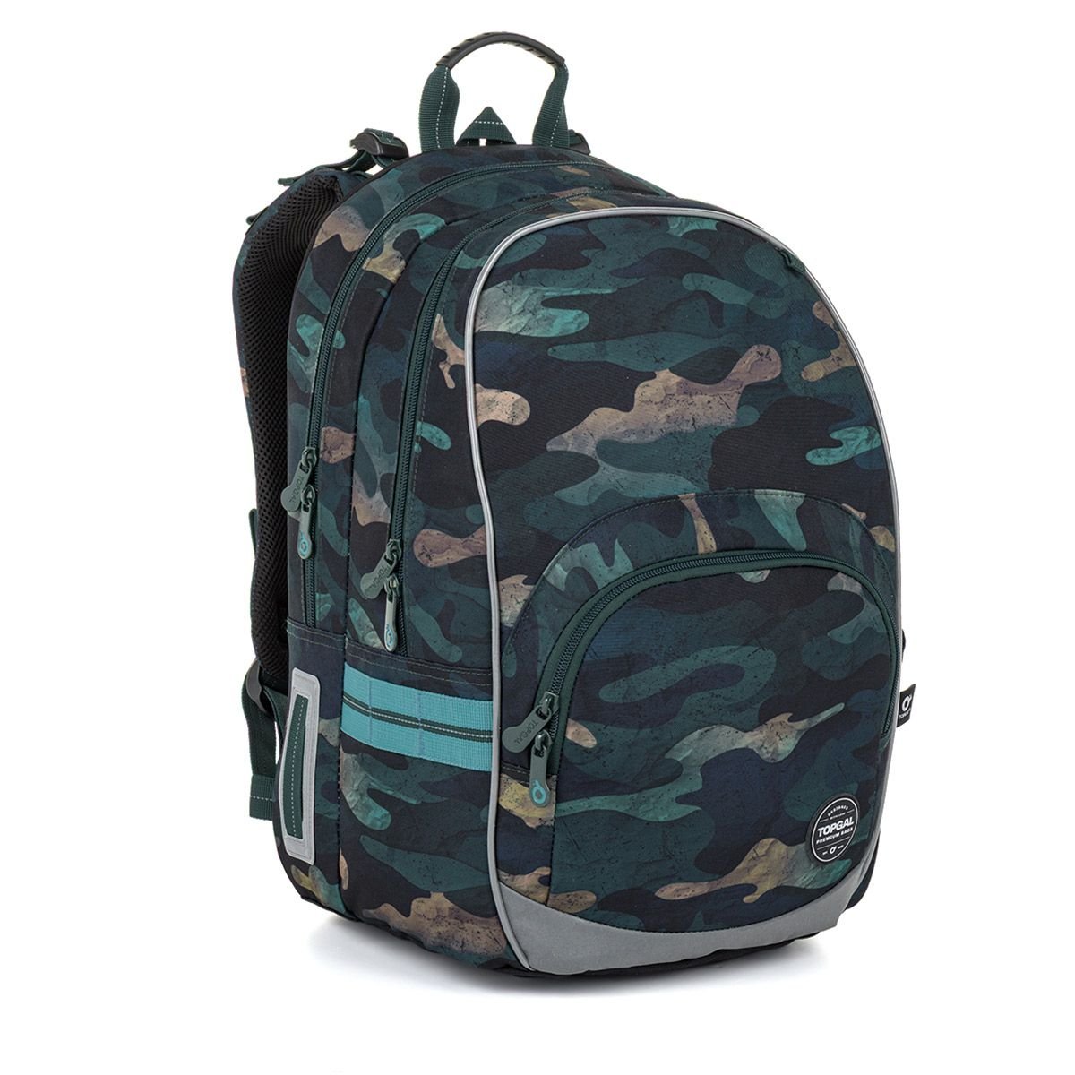 Školní batoh KIMI 26022 je ušitý ve střihu KIMI, který je vhodný pro školáky od 125 cm a ideální pro období od 2. do 5. třídy. Tmavý maskáčový motiv působí moderně a nadčasově a hodí se jak do školy, tak na volnočasové aktivity. Batoh má ergonomicky tvarovaná záda a měkce polstrované ramenní popruhy, které se snadno přizpůsobí rostoucí postavě dítěte. Výškově nastavitelná hrudní přezka pomáhá udržet batoh stabilně na zádech a zvyšuje pohodlí při každodenním nošení. Vnitřní prostor je přehledně členěný. Do zadní části batohu doporučujeme uložit těžší učebnice nebo desky na sešity. Přední kapsa je ideální na menší školní výbavu, například penál nebo box na svačinu. Nechybí ani odnímatelná karabina na klíče, která pomůže udržet drobnosti vždy po ruce. Do bočních kapes se pohodlně vejde lahev ZIVA o objemu 0,5 litru. Batoh je doplněný o reflexní prvky na čele, bocích i ramenních popruzích, které zvyšují bezpečnost dítěte na cestě do školy. Spodní část batohu je vyrobená z odolného materiálu TOPDURA, který chrání batoh před oděrem a pomáhá mu dlouhodobě držet tvar i při každodenním školním používání. Hlavní charakteristika: školní batoh ve střihu KIMI vhodný pro školáky od 125 cm ideální od 2. do 5. třídy ZŠ ergonomicky tvarovaná záda nastavitelné, měkce polstrované ramenní popruhy výškově nastavitelná hrudní přezka přehledné členění vnitřního prostoru tělo a podšívka batohu z recyklovaného polyesteru dle certifikace GRS ?? reflexní prvky na čele, bocích i ramenních popruzích pevné dno z materiálu TOPDURA odnímatelná karabina na klíče PU zátěr proti dešti