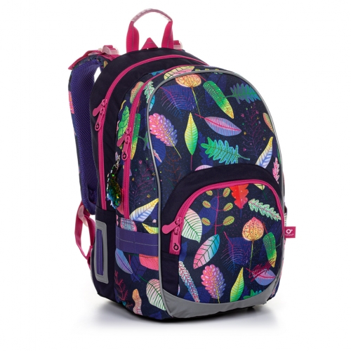 Dvoukomorový batoh s motivem listů pro holky od 2. do 5. třídy ZŠ. pevná záda s lehkou hliníkovou výztuhou hravý potisk v oblíbených barvách dvě objemné komory a praktická malá kapsička Batoh KIMI je i přes svůj subtilní střih poměrně objemný - na výšku má 43 cm, takže se do jeho dvou objemných komor vejde opravdu vše. Navíc motivy listů, to je je hitovka, která hned tak nevyjde z módy, takže batůžek můžete používat určitě i několik let v řadě. Jako doplněk přidal Topgal k tomuto batohu přívěsek ve tvaru zajíčka ozdobeného flitry. Najdete jej na zipu přední komory. Záda batohu KIMI jsou měkce polstrovaná, tvarovaná a vyztužená hliníkovým rámem. Ten váží pouhých 0,06 kg, takže jej určitě nevytahujte, záda batohu by ztratila pevnost a správný anatomický tvar. Ramenní popruhy jsou taktéž polstrované a ergonomicky tvarované. Dají se utáhnout na výšku ve spodní části a k tělu v jejich horní části. Výškově nastavitelná hrudní přezka pomůže při nošení opravdu těžkého nákladu. Spodní část popruhů se díky magnetu dá upnout k polstrované části popruhu. Zadní komora batohu KIMI je užší a doporučujeme do ní dát ty nejtěžší učebnice. Přední komora je široká zhruba 2x tak jako zadní, najdete v ní praktickou síťovou kapsu na zip a jmenovku. K batohu můžete přikoupit penál ve stejném designu PENN 20010, který se vejde i do přední menší kapsičky. Tu ale klidně můžete použít i jako kapsičku na svačinku. K přední kapsičce najdete i odnímatelnou karabinu na klíče. Lahvičku na pití radíme umístit do kapsy na boku batohu. Batoh KIMI je samozřejmě opatřen řadou reflexních prvků na všech jeho stranách tak, aby byla vaše školačka vidět i za špatných povětrnostních podmínek nebo za tmy v zimním období. Zkontrolovat si tuto skutečnost můžete v detailních fotkách, kde máme batoh vyfocený ve tmě. A k tomu: ucho na přenášení batohu v ruce a poutko na zavěšení na lavici dno z pevného a odolného materiálu TOPDURA plastové nožičky chránící dno zátěr proti dešti batoh prošel atestací v ITC Zlín Materiál: 100% Polyester Hmotnost: 1,02 kg Nosnost: 7 kg Rozměry: 43 x 21 x 30 cm (výška x hloubka x šířka) Zakupte produkt Školní batoh Topgal KIMI 20010 z kategorie Aktovky, batohy, tašky přes rameno, příslušenství | Batohy | Školní a volnočasové batohy | Topgal od výrobce Topgal za cenu 1299 Kč.