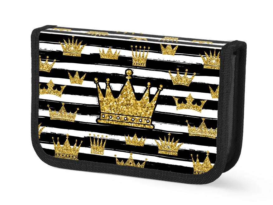 Školní jednopatrový penál se dvěma chlopněmi v černobílé barvě s motivem zlatých korunek je nezbytnou součástí výbavy každého školáka! Penál je nevybavený. Velice lehce se uzavírá díky velkému zipu. Chlopně mají na vnější straně praktickou průhlednou kapsičku na rozvrh. Je zdravotně nezávadný a neobsahuje toxické látky Penál obsahuje: - 23 poutek na pastelky, tužky a pera - 3 větší poutka, např. na pravítko, nůžky, gumu DOPORUČENÍ: čistit pouze navlhčeným hadříkem ve vodě s trochou saponátu Zakupte produkt Školní penál 1-patrový prázdný MFP - Korunka z kategorie Aktovky, batohy, tašky přes rameno, příslušenství | Penály, etue | Penály | 1-patrové prázdné od výrobce MFP Paper za cenu 63 Kč.