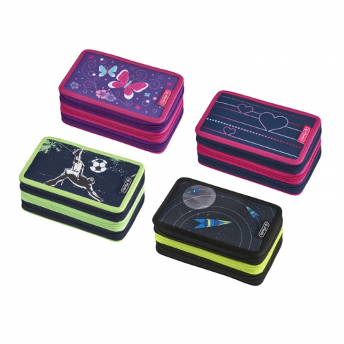 Třípatrový prázdný penál obsahuje celkem 32 gumových poutek pro uložení psacích potřeb. Rozměry: 19 x 11,5 x 7 cm Materiál: polyester Mix motivů: Motýl fialový, Srdce, Góóól, Vesmír Tyto penály jsou dodávány v mixu. V případě, že požadujete konkrétní motiv, napište nám to do poznámky na konci objednacího procesu. Pokud vám nebude možné vyhovět, budeme vás o tom informovat. Zakupte produkt Školní penál Herlitz 3-patrový prázdný - mix motivů: Motýl fialový, Srdce, Góóól, Vesmír - skladem už jen Vesmírl z kategorie Aktovky, batohy, tašky přes rameno, příslušenství | Penály, etue | Penály | 3-patrové prázdné od výrobce Herlitz za cenu 245 Kč.
