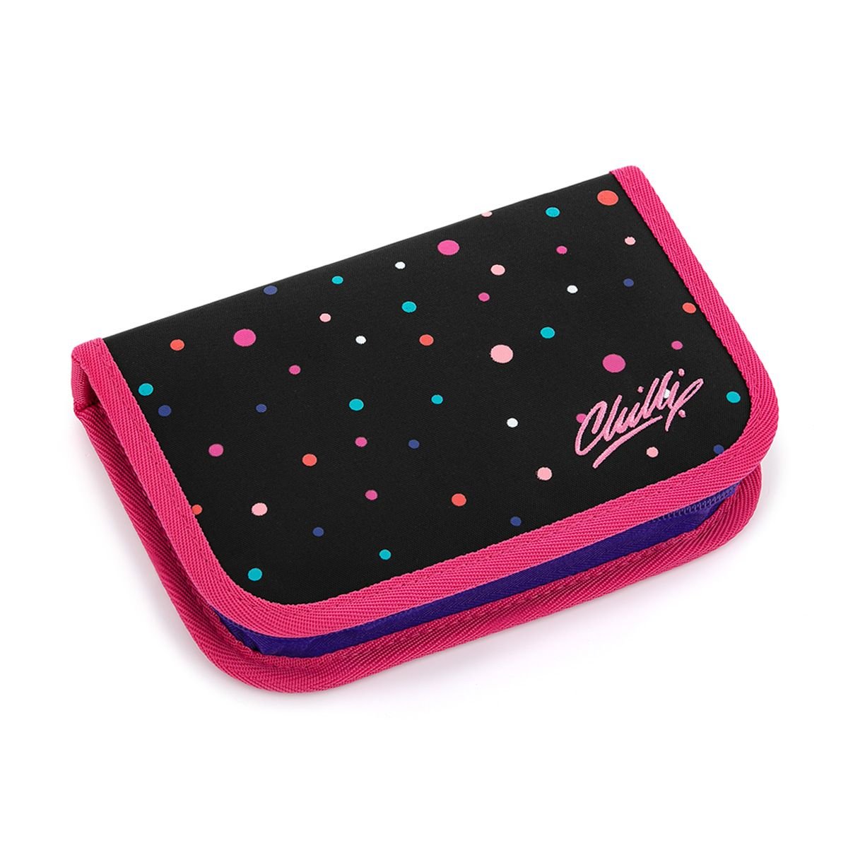 Jednopatrové školní pouzdro je vybaveno osmnácti klasickými gumovými úchyty na pastelky a fixy, čtyřmi širšími úchyty na pravítko, kružítko či nůžky a dvěma většími úchyty na gumu a ořezávátko. Pod klopnou z průhledné folie najdete rozvrh hodin, ale třeba poslouží i na taháky :-)Penál je polstrovaný, takže spolehlivě ochrání všechny psací potřeby vašich dětí. Zapínání je řešeno kvalitní zipy s velkými taháčky, které umožňují dětem snadnou manipulaci s pouzdrem. Pozor! Neperte penál v pračce! Je vyztužen papírem a ten praní rozhodně nepřežije... Novinka! Vnitřní podšívka školních penálů je vyrobena z šedé látky a obrazce na ní vytištěné je možné vybarvovat! Doporučujeme k vybarvení použít klasické pastelky, fixy by se mohly rozpíjet...