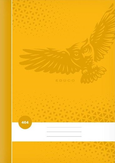 Školní linkovaný sešit ve formátu A4, ve žluté barvě, s motivem sovy, v deskách z křídového papíru. Stránky jsou opatřeny okraji o šířce 1,5 cm. Typ: 464 Formát: A4 Motiv: sova Barva: žlutá Šířka řádku: 8 mm Počet listů: 60, linkované Gramáž listů papíru: 60 g Desky: matný křídový papír 200 g
