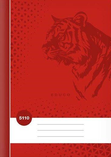 Školní sešit ve formátu A5, čtverečkovaný, v červené barvě, s motivem tygra, v deskách z křídového papíru. Oproti běžným čtverečkovaným sešitům je rozměr čtverečků dvakrát větší. Typ: 5110 Motiv: tygr Formát: A5 Barva: červená Gramáž listů papíru: 60 g Počet listů: 10, čtvereček Rozměr čtverečku: 10 x 10 mm Desky: matný křídový papír 200 g