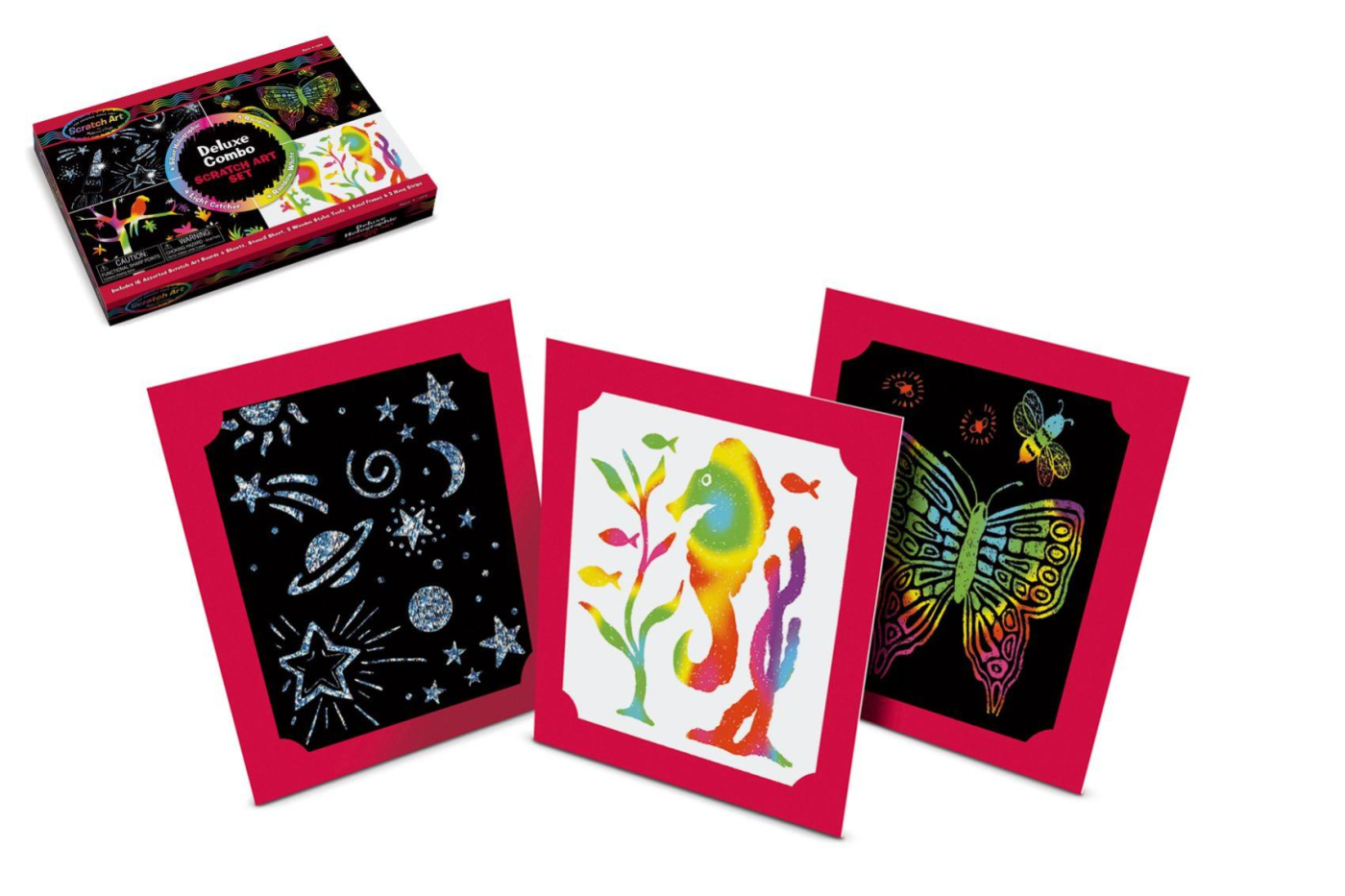 Parádní vyškrabovací sada.. Tato sada obsahuje materiál pro 16 různých barevných podkladů pro vytvoření uměleckých výtvorů dětí. Sada je vhodná jako dárková pro malé fanoušky světu vyškrabávání nebo na oslavu narozenin pro větší skupinu dětí. Je možné vyškrabávat podle vlastní fantazie nebo podle šablon v sadě. Velikost obrázků: 14 x 21, 5 cm Rozměr balení: 35 x 25 x 4 cm Vhodné pro děti od 4 let