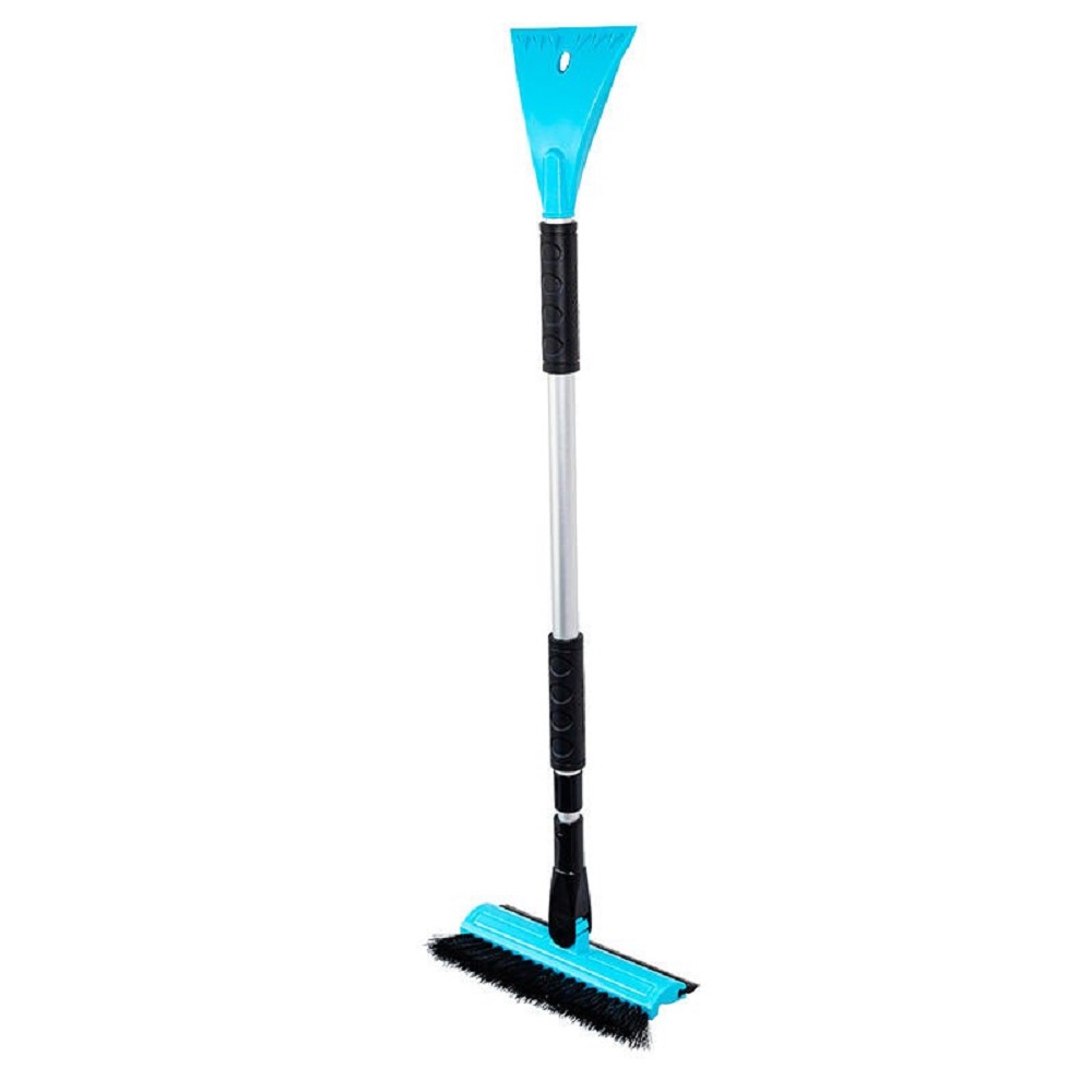 Škrabka na led teleskopická 3v1 Robustní teleskopická škrabka s otočným košťátkem a stěrkou na okna z hliníku a odolného plastu. Košťátko lze otočením použít ve svislé i vodorovné poloze. Teleskopický mechanismus zajistí celkovou délku 55-80 cm. Rukojeť je opatřena měkkou pěnou pro pohodlný úchop a snadné použití. Konstrukce samotné škrabky je doplněna o chránič „vlnku“ chránící ruce před popraškem oškrábaného sněhu a ledu.