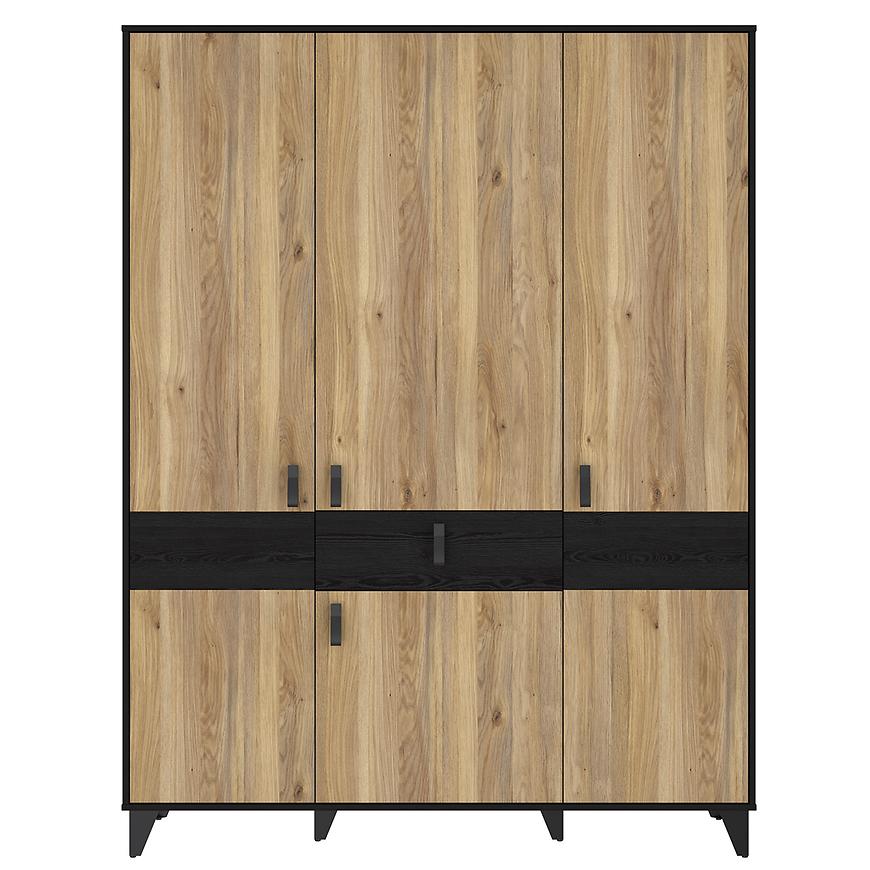Šatní skříň Ska A20 Barva korpusu: Grafit, Rozměry: 200 cm, Dveře: Dub - Craft zlatý
