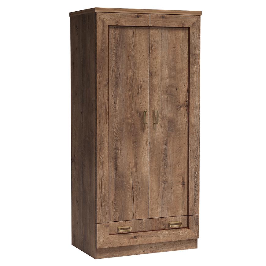 KOLEKCE PRO TY, KTEŘÍ OCEŇUJÍ ŠIK A ELEGANCI. Kolekce vytvořená pro milovníky anglického stylu, plná půvabu a jedinečných zdobení. Čím se tato kolekce vyznačuje? Vynikají ornamentním prosklením vitrín a komod a také elegantním anglickým stylem. NÁBYTEK TADEUSZ - tradice spojená s moderností. Dekorativní ozdoby a viditelná struktura dřeva dodávají zajímavý, ale ne přitlačující vzhled. Zasklení s dekorativními ornamenty dokonale podtrhne útulnou atmosféru interiéru. Jednoduchá šatní skříň je vyrobena z nejkvalitnějších materiálů. Má krásné ozdoby v podobě úchytek. Pro vnitřní vybavení jsou na výběr tři police, které rozhodně usnadní uložení věcí ve skříni, nebo varianta s šatní tyčí, díky které bude vaše oblečení vždy připraveno na použití. Ve spodní části je hluboká zásuvka. Kolekce nábytku do obývacího pokoje Tadeusz kombinuje eleganci, různorodost tvaru s efektem 3D na čelech. To vše doplňuje mimořádná funkčnost systému. • korpus a čela z laminované desky o tloušťce 16 mm • horní a spodní desky o tloušťce 32 mm • dekorativní MDF lišta na přední straně • ABS lišta, která zvyšuje odolnost proti oděru a vlhkosti • kovové úchytky v barvě starého zlata • válečkové zásuvkové pojezdy • ozdobné sklo ve vitrínách