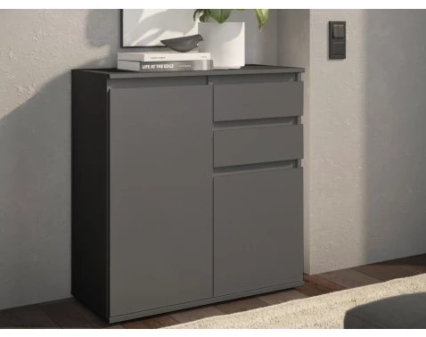 Skříňka se 2 šuplíky z řady Brest - nábytek v jednoduše moderním stylu má nadčasový look a zároveň praktické využití kdekoliv v bytě. V antracitově šedé barvě.